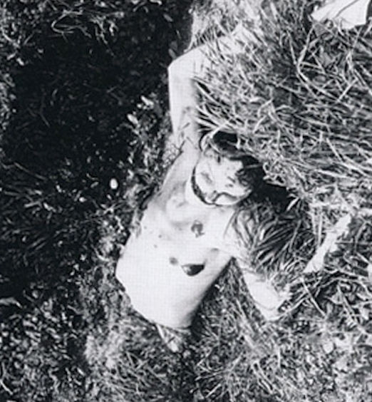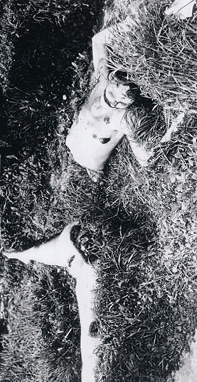 In 1915, Man Ray painted the “Black Widow (Nativity)” (Black Widow) pictured below. As you can see behind the Black Widow, I have placed the “covered” photograph of the Elizabeth Short crime scene in Los Angeles (The Dial Murder Network). The surrealist-pose in the Black Widow extends far beyond surrealism-themes and dive deeply into shockingly visceral details that mirror Elizabeth Short’s torture and murder: