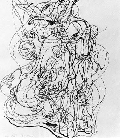 In the image to the left, French artist Andre Masson drew with a surrealism technique called “Automatic Drawing” (MoMA 1924).
